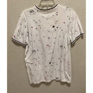 White Splatter Paint Mens T-Shirt With "Savage" Script Design S L