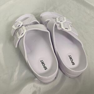 White Sport Rubber Buckle Sandals Slides Slippers EU 40 US 9