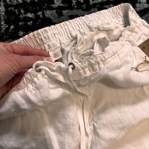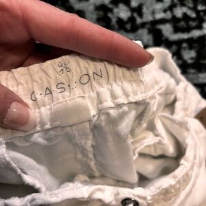 Comfortable white drawstring pants with a relaxed fit. Perfect for casual wear. Material is see through.