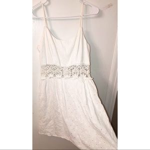 Short dress with a cut out above the belly button all the way around! Looks like lace but it’s a soft fabric cut out! I’ve worn this for Easter and it was super cute!