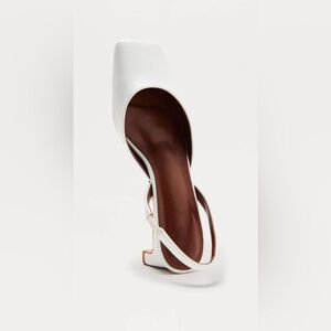 Chic white slingback heels with a square toe. Stylish and versatile.
