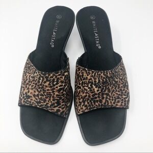 White Stag Animal Print Square Toe Wedge Heeled Slides Size 9.5