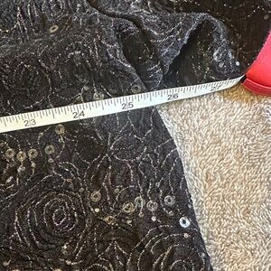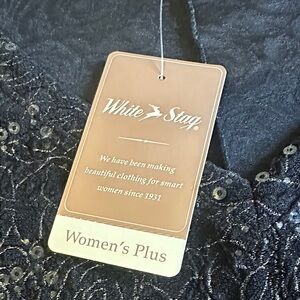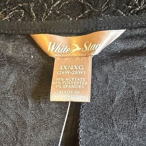 This is a White Stag short sleeve V neck Black top. It is a floral shimmer stretch top. Size 4X Approximate measurements: