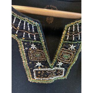 White Stag Black Sleeveless Beaded Neckline Top Sz XL