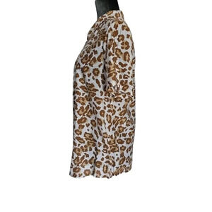 Animal Print Button Down Blouse, Short Sleeve, Lightweight,79% Rayon 21% Nylon, Armpit to Armpit 23in Length 28in