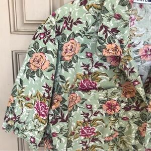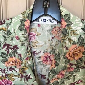 White Stag Blouse Sz10 Sage Green Floral Short Sleeve Detail Button Down Pretty