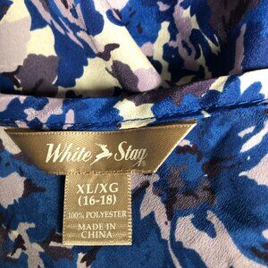White Stag Blouse Womens Size XL 16-18 Blue Lavender Floral Lightweight Top