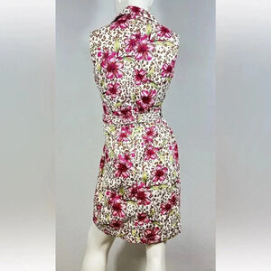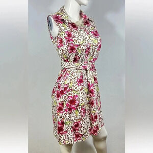White Stag Button Front Sleeveless Leopard Floral Shirt Dress Ladies 8 Belted