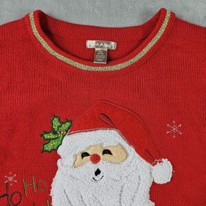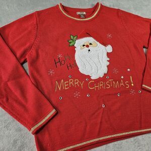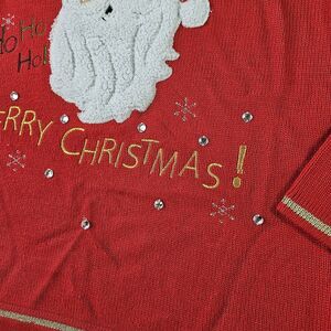 White Stag Christmas Sweater Santa Textured Beard Women's Large Red Grannycore