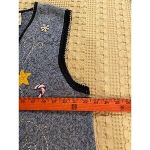 White Stag Christmas Sweater Vest Vintage Look Zipper Front Blue w/ Snowman and ornaments. Cute edging around neckline and arms. Zipper front for an open or closed look. Super cute for everyday wear or to the “Ugly Christmas Sweater “ Contest!!!
