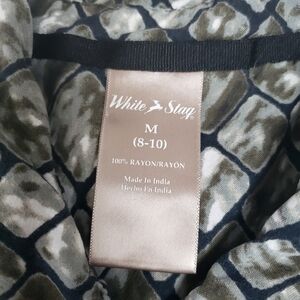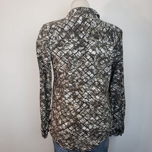 Women's White Stag Button Down Long Sleeve Beautiful black diamon pattern with shade of olive green and white.