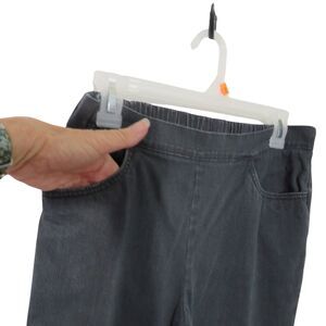 White Stag Elastic Waist Pants Women M Gray Pinstripe Casual Wear