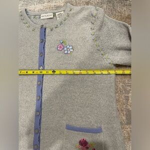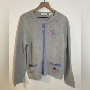 White Stag Embroidered Floral Soft Cozy Cardigan Sweater Gray Size Large