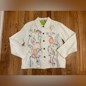 White Stag Embroidered Jacket Size 4-6 Button Down Long Sleeves