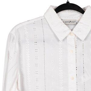 White Stag Eyelet Button Up Shirt L 12 14 Womens VTG NEW White Cotton Collared