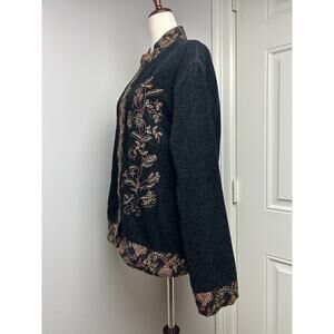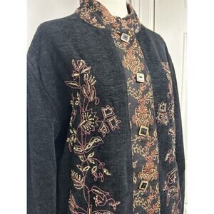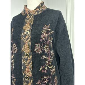 White Stag Floral Acrylic Knit Embroidered Mock Neck Cardigan Size L 12/14 Boho