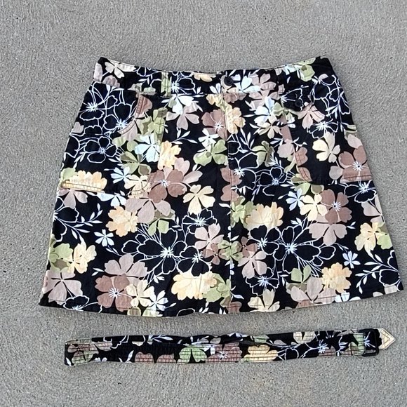 White Stag Floral Hawaiian Stretch Skort Mini Skirt with Belt 14