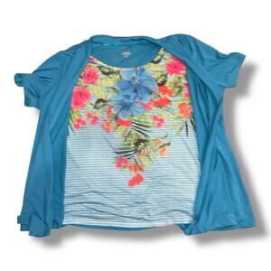 White Stag Floral Tropical T-Shirt Attached Jacket Size 4X 26W 28W Holiday NEW