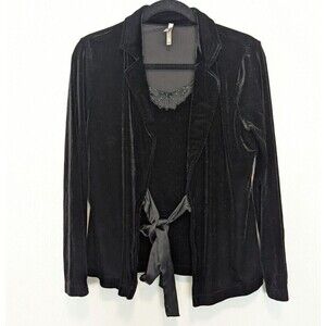 White Stag Jacket Set Womens Medium Black Velvet Lace Satin