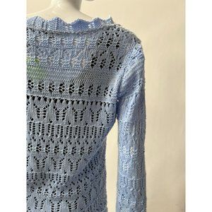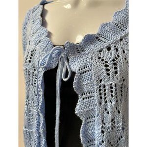White Stag Knit Sweater Size 10 Love You Blue Acrylic Open Weave