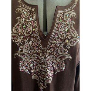 White Stag Ladies XL Brown Embroidered V Neck Long Sleeve Tunic Top
