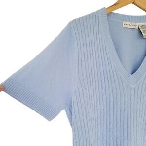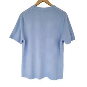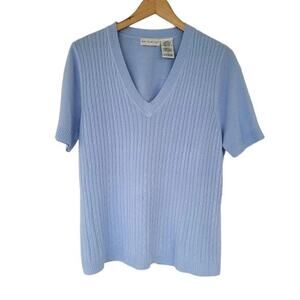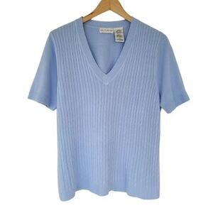 White Stag Light Blue Short Sleeve V-Neck Knit Top Womens Size L Acrylic Vintage