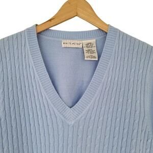 Tags: vintage top, knit blouse, White Stag, light blue shirt, retro style, grandma core, cozy knit, v-neck top, minimalist fashion, 90s vintage, casual comfort, timeless basic, acrylic knitwear, soft texture, women’s top