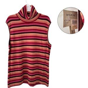 White Stag Maple Stripe Sleeveless Turtleneck Top | Size Large 12/14