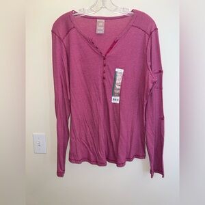 This relaxed-fit top from White Stag features a buttoned design with ribbed detailing, offering a comfortable and stylish look. The soft pink color adds a touch of elegance, making it a versatile addition to any wardrobe.