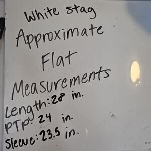 The size tag has been cut out but measures at a size 2XL. Please refer to measurements.