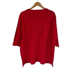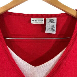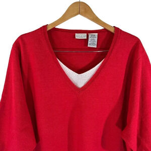 White Stag Red Knit Top Plus 22W 24W White Trim V Neck Half Sleeve Pullover