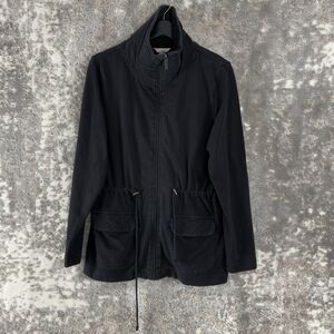 White Stag Size L 12/14 Mock Neck Drawstring Full Zip Sweater Black Outdoor