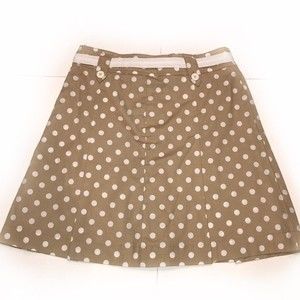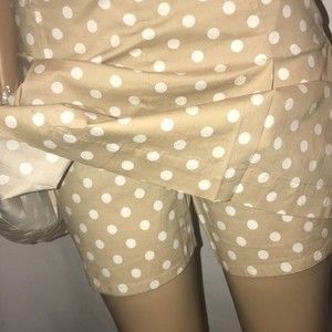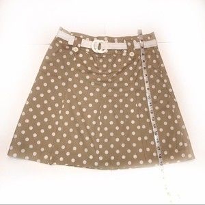 White Stag Skort tan white stretch belted side zip size 5 Ladies polka dots 97% cotton 3% spandex measurements are approximately in inches waist 14.5 inches length 18 inches attached 6 inches shorts inseam great Condition and Color