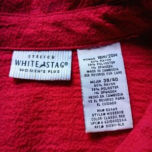 White Stag Stretch Women's Plus Rayon Crinkle Rolltab Sleeve Button Front Shirt