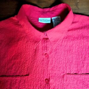 White Stag Stretch Rayon Crinkle Rolltab Sleeve Button Front Shirt NWOT