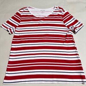 White Stag Striped Red White Blue Short Sleeve Tee Size 16W 100% Cotton