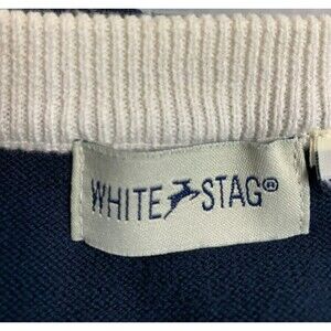 White Stag Sweater Vest Women Sz L Navy w/White Trim Rib Armholes Vtg Y2K Preppy