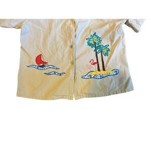 White Stag Top SZ Med Embroidered Flamingo Palm 100% Cotton Art to Wear Boho
