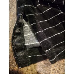 White Stag Velour Top Womens Sz L Black Silver Metallic Long Sleeve