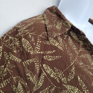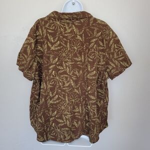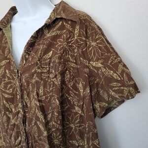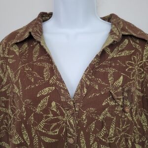 White Stag Vintage Stretch 2X 18W/20W Brown Button Up Shirt Green Leaf V-neck