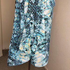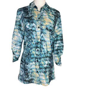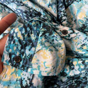 White Stag Women Patterned Blue Button Down Blouse Roll-Tab Sleeves Size 16/18