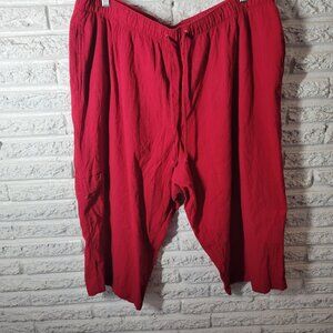 White Stag Womens Pants 3X Plus Capri Pull On Red Crinkle Crepe RED17E
