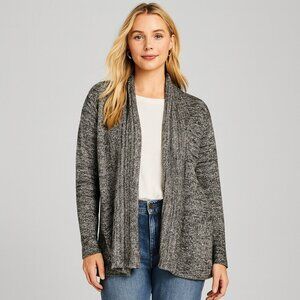 White Stag Women’s Size Small Black Gray Open Front Textured Cardigan Sweater