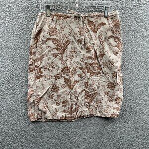 White Stag Womens Straight Skirt 12 Tan Brown Floral Linen Blend Zip Drawstring