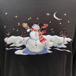 White Stag Womens Winter Holiday Snowman Black Top Size XL