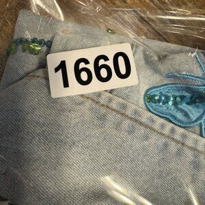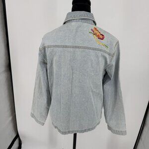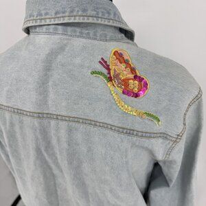 White Stag Y2K Denim Jacket Womens Size M Embroidered Sequined Butterfly Fairy