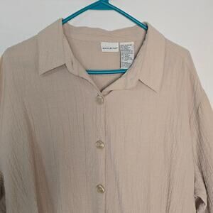 White Stage Beige Crinkle Blouse Button Up 3/4 Cuffed Sleeves Size XL (16-18)