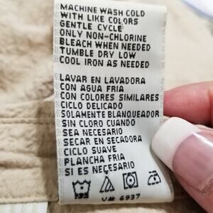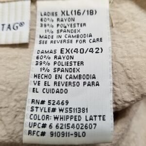 White Stage Beige Crinkle Blouse, Size XL (16-18), Material - (Crinkle) 60% Rayon, 39% Polyester, 1% Spandex; Care - Machine Wash Cold, Gentle, Tumble Dry Low; Made in Cambodia; Button Up, Pointed Collar, Button Cuffed 3/4 Sleeves, Side Seam Slit;