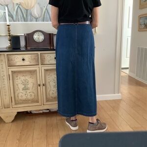 Vintage white .stagg Maxi Skirt …never worn. Marked Size 14 (vintage sizing) but fits like today’s size 8. I’m 5’7” and the length hits just above my ankle. Mid weight denim. Still has original tags.