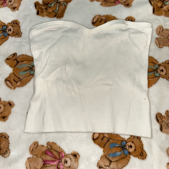 Chic white strapless ribbed top. Perfect for casual outings.